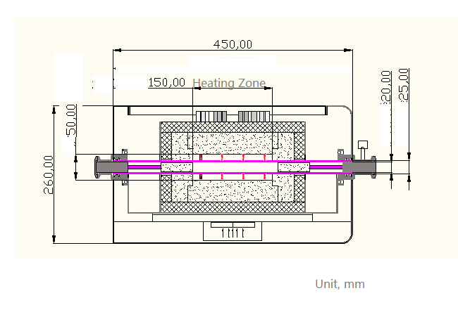 爐體由4個(gè)小管式爐組成,采用氧化鋁爐管,尺寸為25 OD×22 ID×460 L mm。 每個(gè)加熱模塊都有獨(dú)立的溫控系統(tǒng)控制,溫度可達(dá)1700℃。 快速密封法蘭,安裝有機(jī)械真空壓力表,進(jìn)氣端安裝有浮子流量計(jì),樣品可在真空或氣氛保護(hù)環(huán)境下進(jìn)行熱處理。 可同時(shí)放入4個(gè)樣品,在不同溫度下進(jìn)行熱處理。