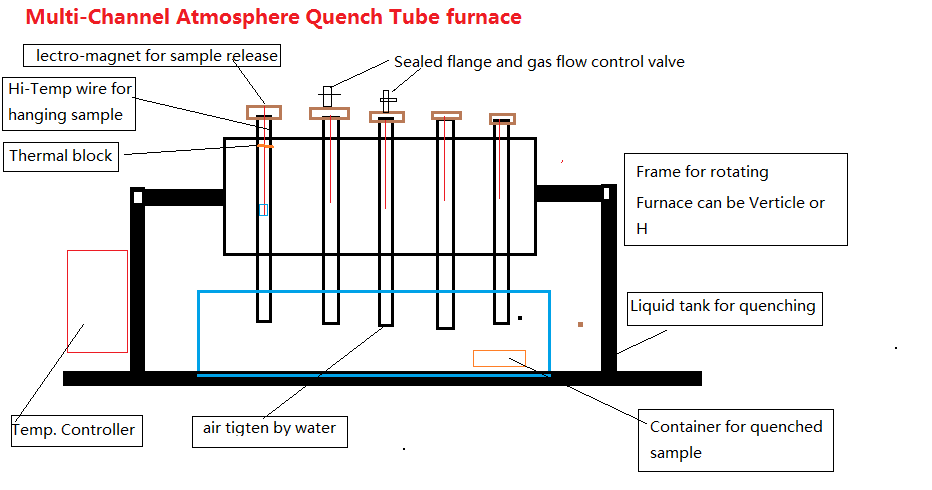 此管式爐可升級(jí)為立式淬火爐(加上旋轉(zhuǎn)機(jī)構(gòu)和淬火劑罐)