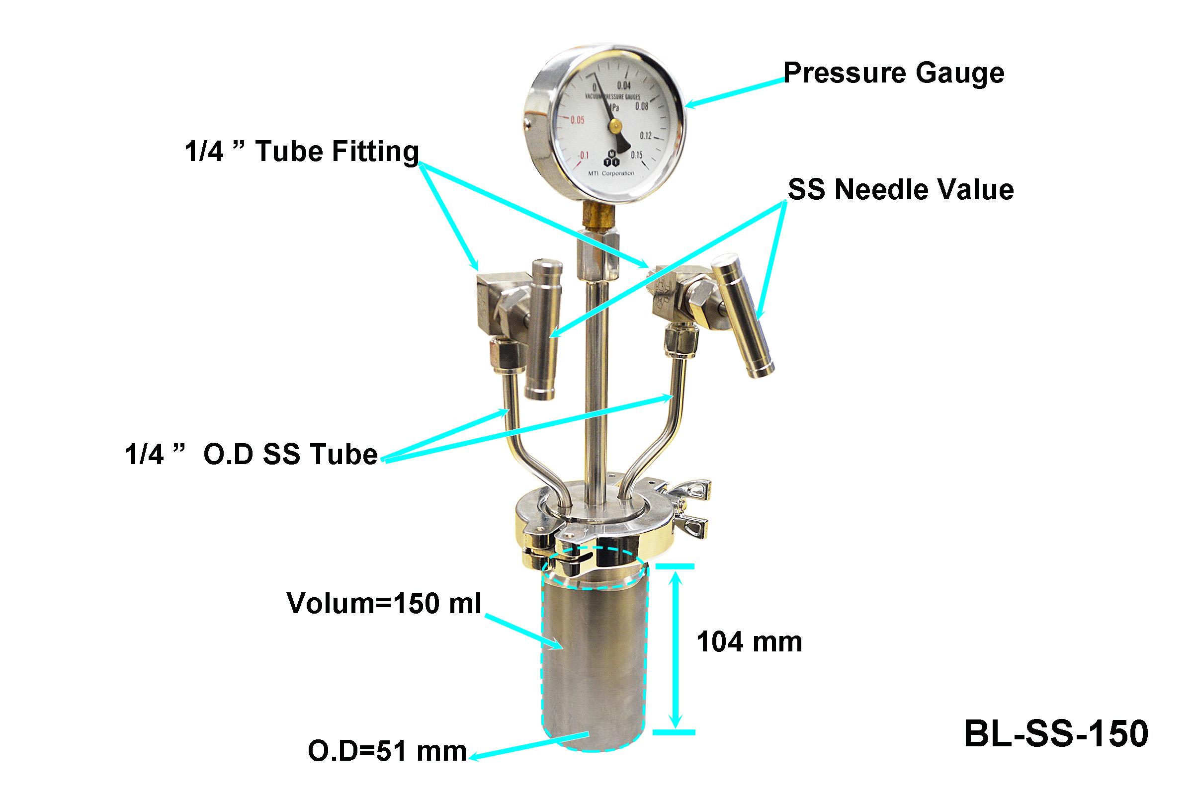 316不銹鋼制作,容量為150ml。 上面安裝有2個(gè)不銹鋼針閥,帶有φ6.35mm卡套接頭。 罐體上的蓋子采用快捷KF卡箍連接,方便打開蓋子,對(duì)罐內(nèi)進(jìn)行清理。 |