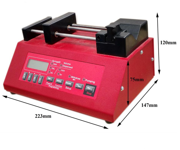 鍵盤界面輸入,操作簡單。 可兼容不同尺寸注射器,至多可容納60毫升。 連續(xù)注射供給直至停止。 在注液供給過程中可以中途改變輸液速度。 帶有記憶功能,可重復(fù)上一次操作。 電源故障模式允許泵在復(fù)位后繼續(xù)泵送。 注射器可單獨(dú)取下,進(jìn)行清洗。 可顯示注射液體的總量,單位為ml或uL。 用60ml注射器較大泵送速率為25ml / hr。 注射速率精確,重復(fù)性好。 可選輸注速率單位:ml/ hr,uL/ hr,ml / min,uL/ min。 僅可注入,不帶有抽取功能。 可選購可加熱玻璃注射器。 |